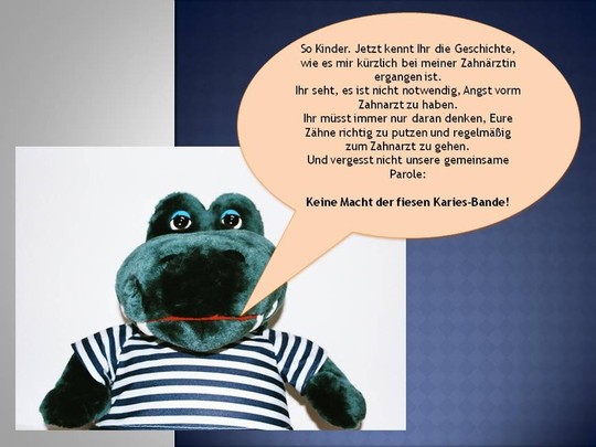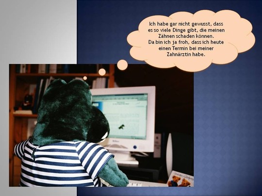 Bruno weiß, was seinen Zähnen gut tut. In seiner kleinen Geschichte erzählt er Euch, was Ihr unternehmen könnt, damit Eure Zähne gesund bleiben.
